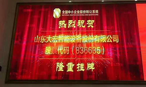 山東大宏智能設備股份有限公司正式在新三版掛(guà)牌(pái),股票簡稱:大宏智能(néng),股(gǔ)票代碼:836635。...