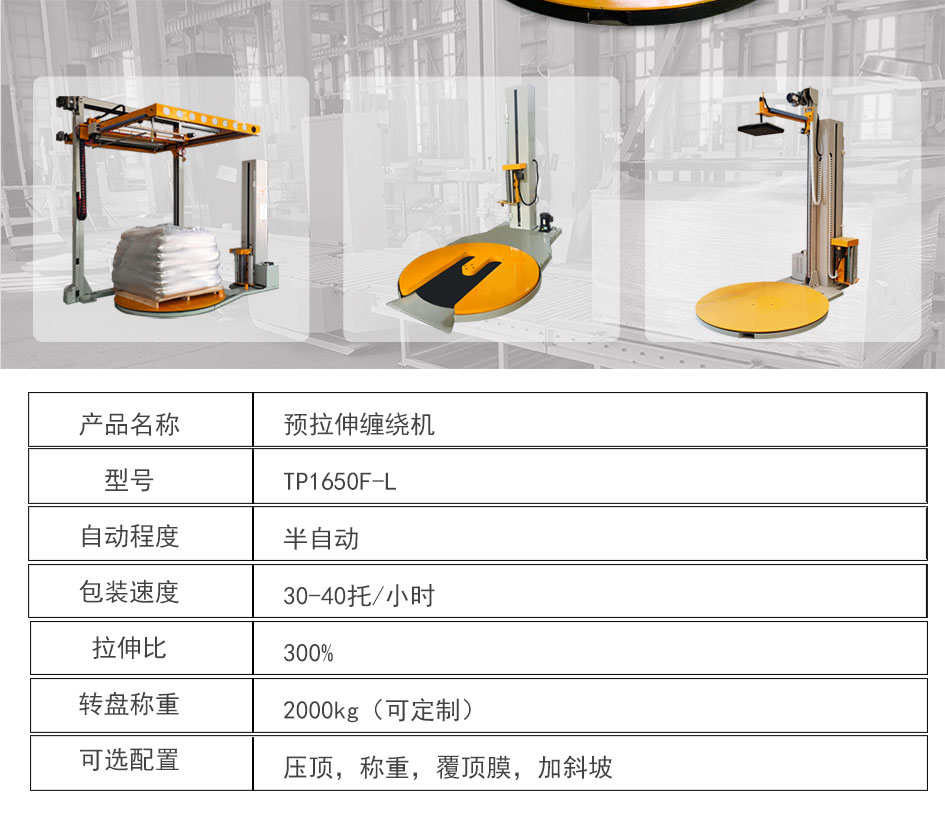 大(dà)宏佳森拉伸纏繞(rào)包(bāo)裝機TP1650F-L適用於散貨的集裝箱運輸散貨托盤的包裝