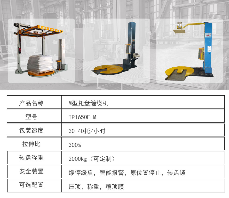 大宏佳森M托盤纏繞機TP1650F-M,采(cǎi)用M型圓盤,