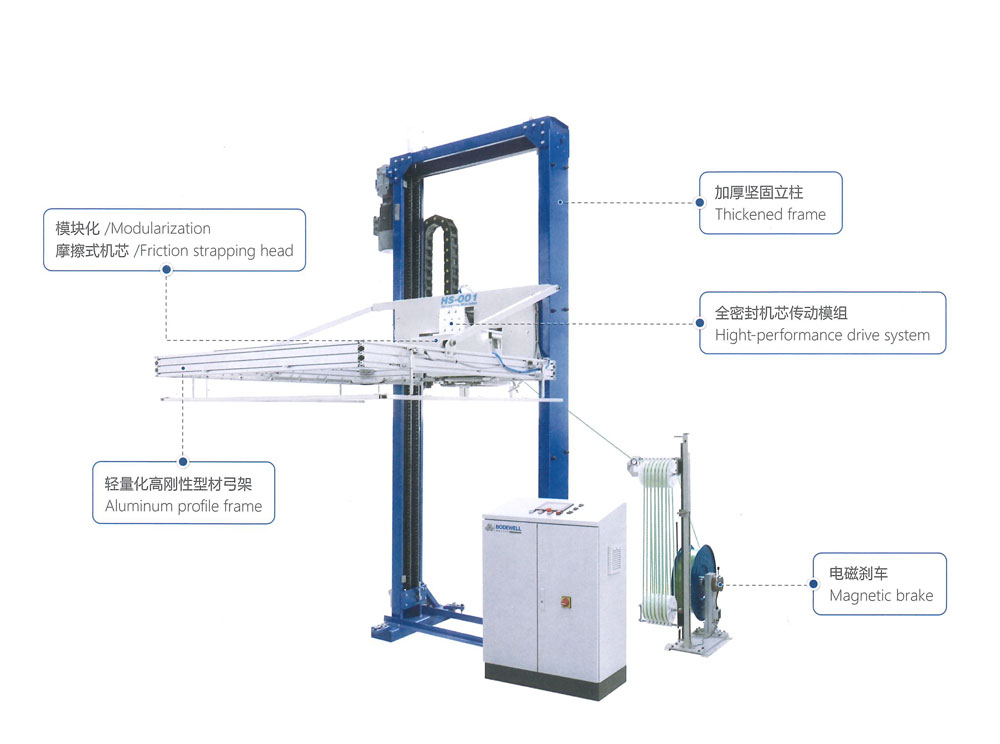 ● 全自動水平式捆(kǔn)紮機是對棧板上麵放置的產品通過(guò)水平穿帶方式實現產(chǎn)品的水平打包,保證產品在運輸、儲存中不因捆紮不牢而散落,同時還(hái)需要捆紮整齊(qí)美觀。適用於長度、寬度有(yǒu)一定規律的貨物,最低打帶高度能到距(jù)離地麵200mm。