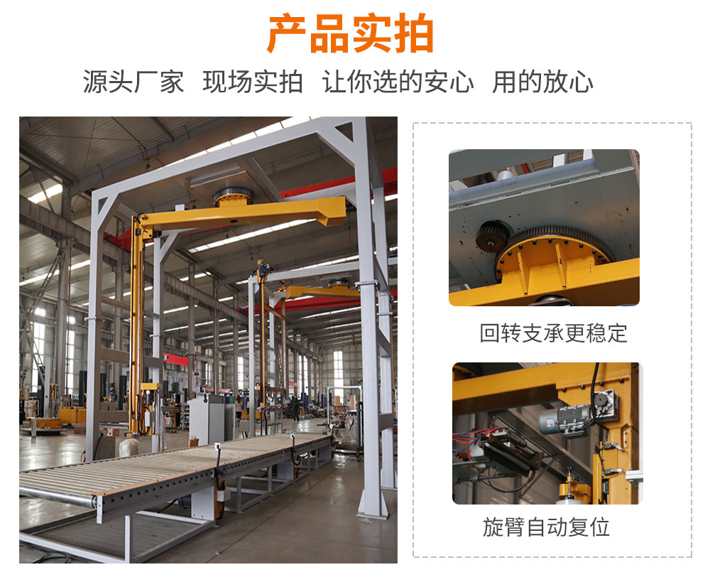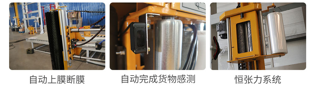 可實(shí)現流水線包裝,貨物不動,設備上的纏繞膜圍繞著貨特運轉